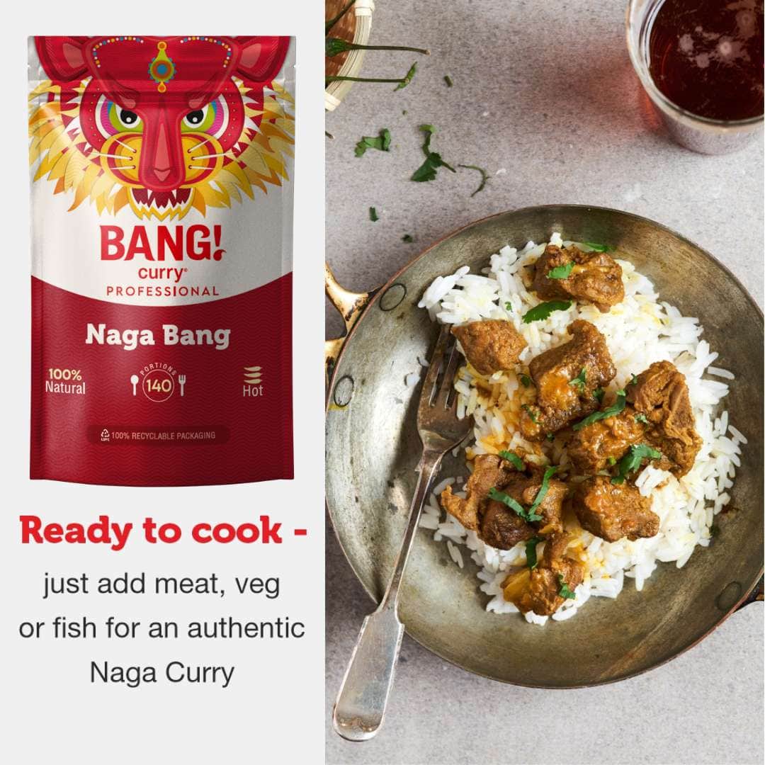 Spicy Naga is the king of curries. This family recipe is bursting with layers of flavour – topped with a pleasing chilli bite. Works deliciously with meat, veg and fish!